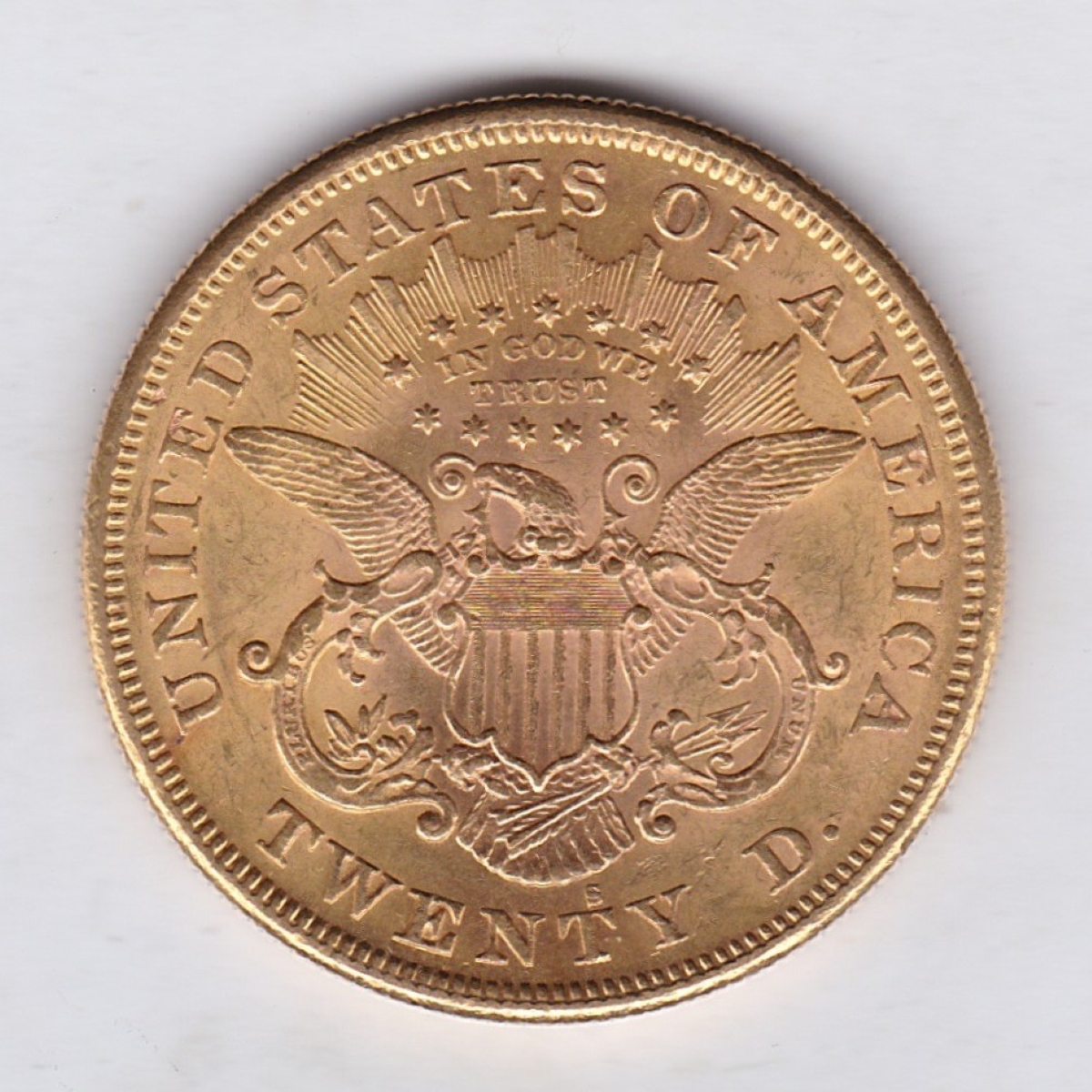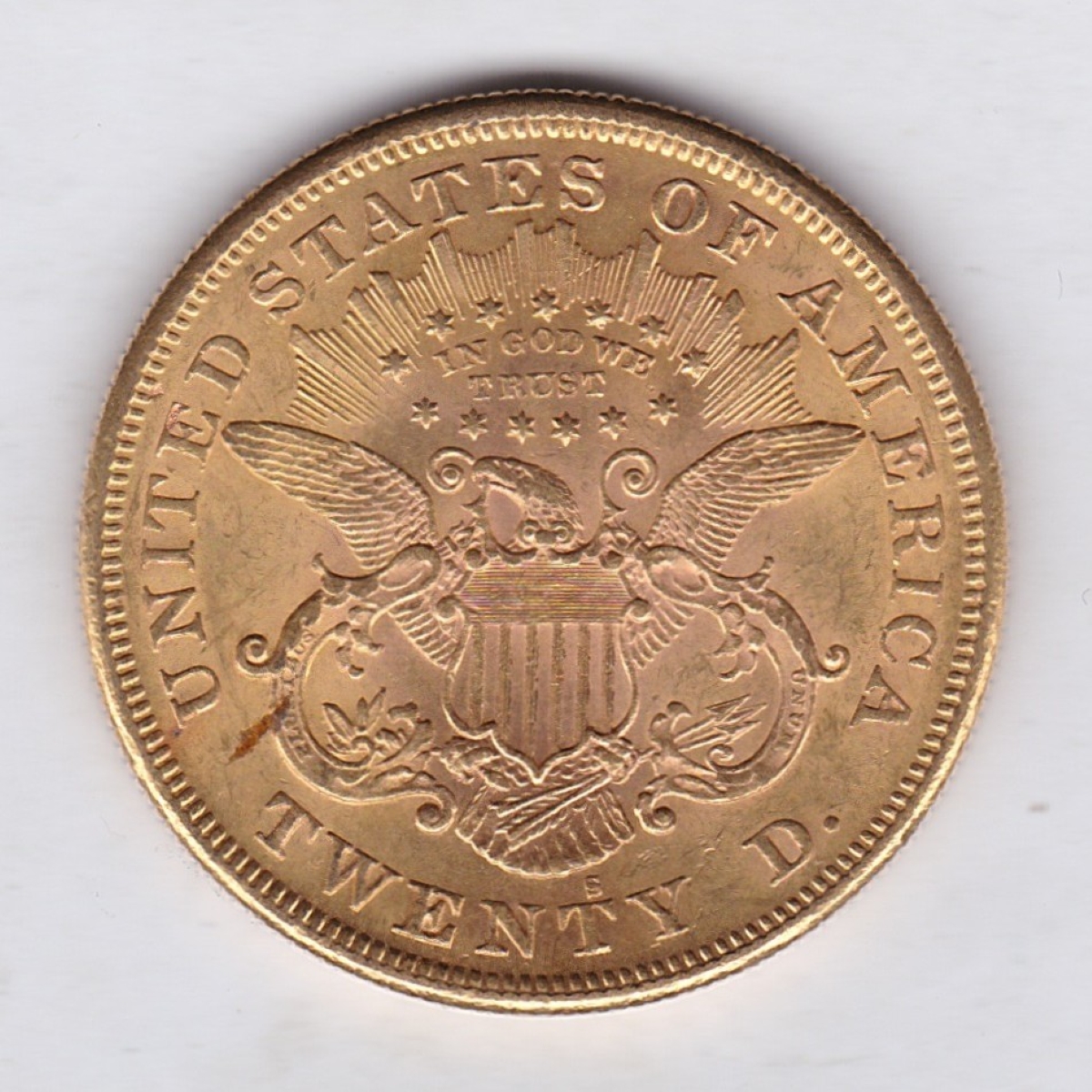 The 1876 USA gold Twenty Dollars coin was struck in San Francisco and had a mintage of 1,597,000,.