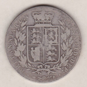The 1876 Young head Halfrown is a coin struck in 0.925 silver by the Royal Mint. This Young head design of Queen Victoria was used on the Obverse of the halfcrown between 1839 and 1887. The Reverse of this coin depicts a crowned square shield with laurel branches, a thistle, rose, and shamrock spray below.