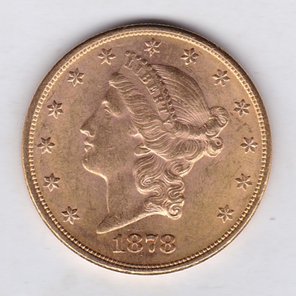 The 1878 USA gold Twenty Dollars coin was struck in Philadelphia and had a mintage of 543,645.