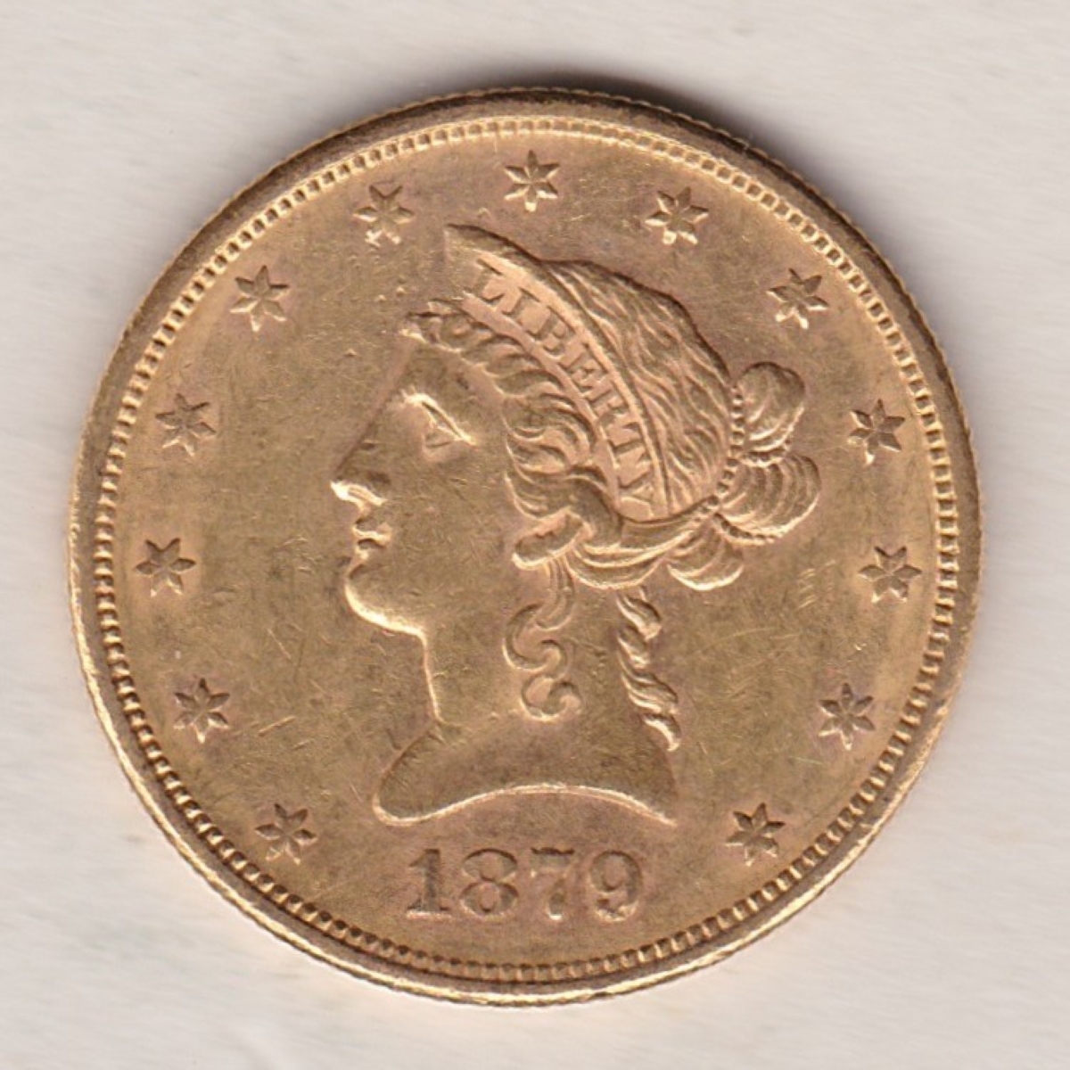 1879 S USA Gold Ten Dollars Coin In Extremely Fine Condition.