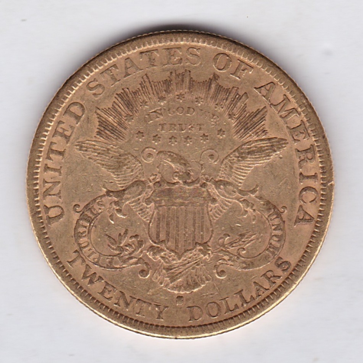 1879 S USA Gold Twenty Dollars Coin In Very Fine Condition.