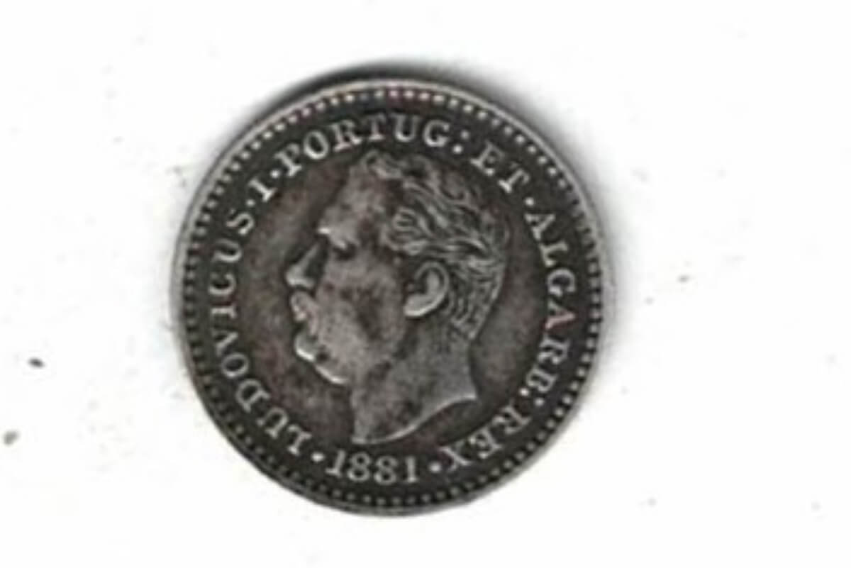 The obverse features the portrait of King Luis I facing left. The reverse features the Portuguese coat of arms.