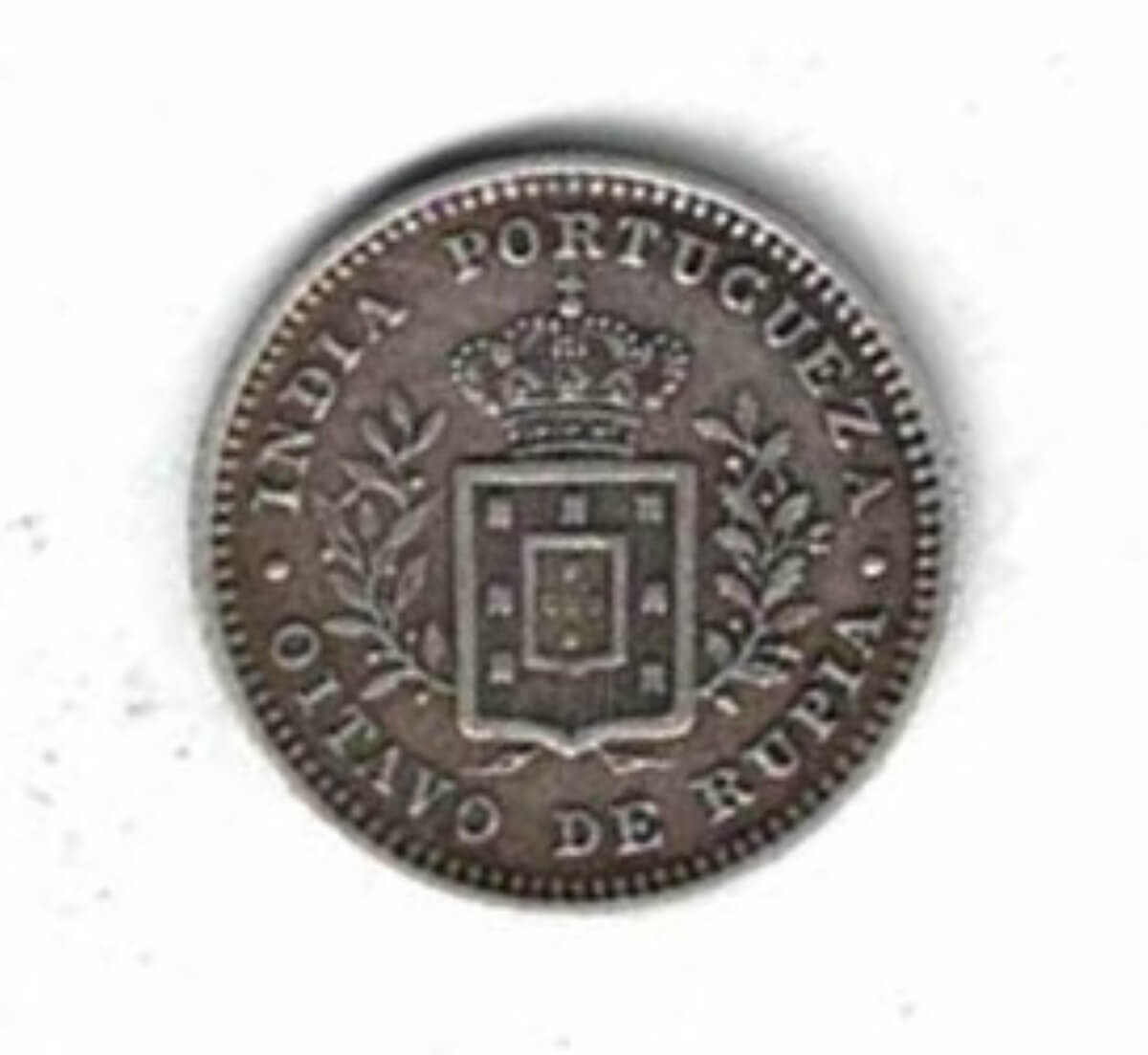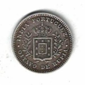 1881 Portuguese India Silver One Eighth Rupia Coin In Near Extremely Fine Condition.