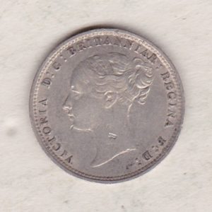 The 1881 Threepence is a coin struck in 0.925 silver by the Royal Mint. This Young head design of Queen Victoria was used on the Obverse of the threepence between 1838 and 1887. The Reverse features a crowned denomination dividing the date, all within an oak wreath.
