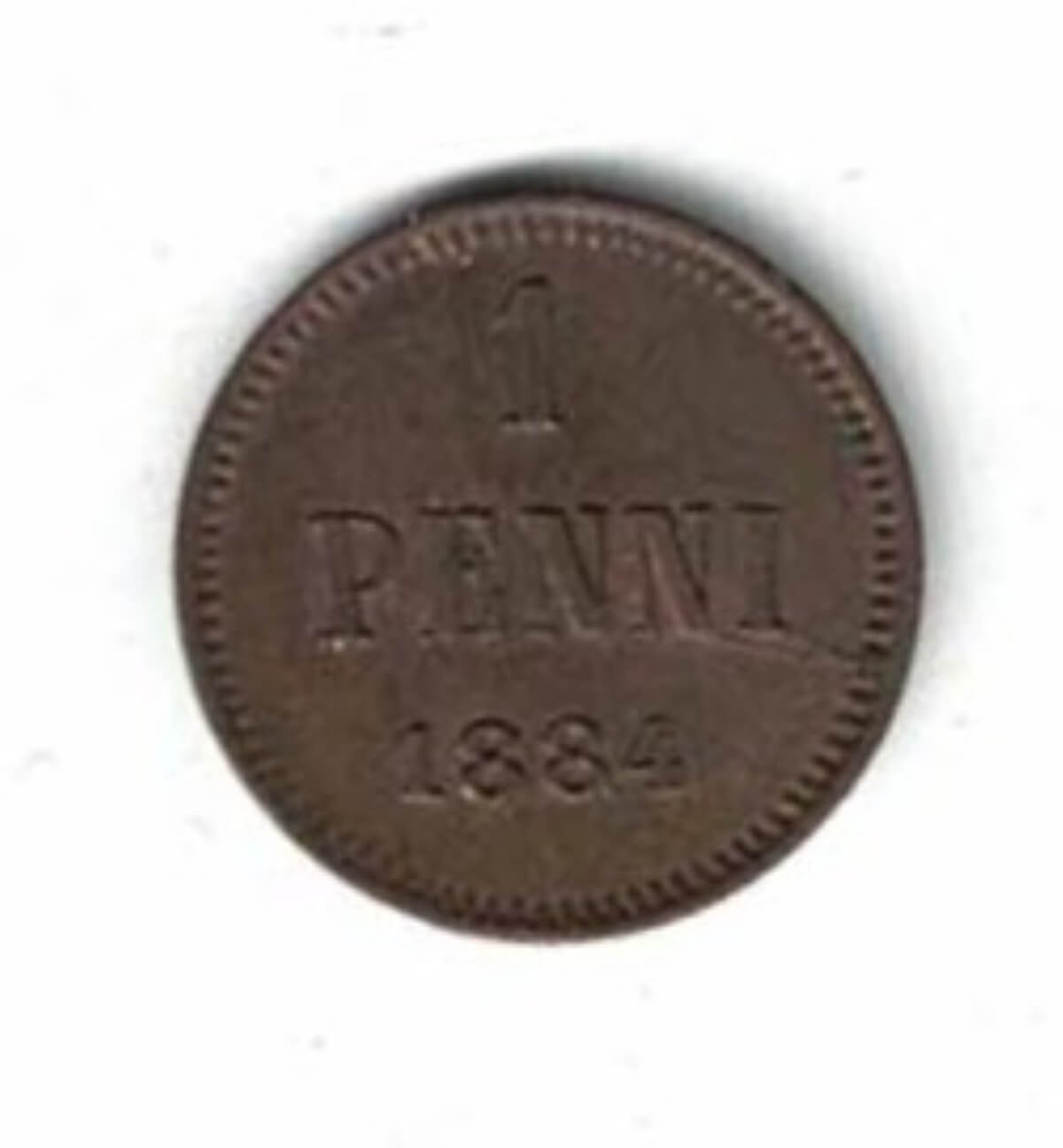1884 Finland Scarce One Penni Coin In Near Mint Condition.