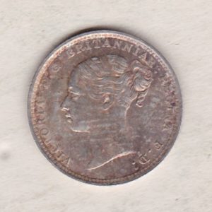 The 1884 Threepence is a coin struck in 0.925 silver by the Royal Mint. This Young head design of Queen Victoria was used on the Obverse of the threepence between 1838 and 1887. The Reverse features a crowned denomination dividing the date, all within an oak wreath.