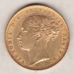 1885 S Victoria Young Head Gold Full Sovereign Coin In Near Extremely Fine Condition.