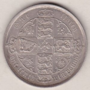 The florin was introduced in 1849 as part of the British coinage’s move towards decimalization. This coin was worth 1/10th of a pound or 2 shillings. It was more commonly known as the 2 shilling coin. It is equivalent to the current ten pence coin.