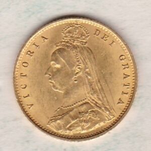 The 1887 gold half sovereign was the first to feature the Jubilee effigy of Queen Victoria, this portrait was issued to commemorate her Golden Jubilee. The Jubilee head was designed by J.E. Boehm on the obverse and this coin has a shield designed on the reverse by John Baptiste Merlen.