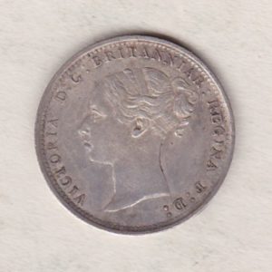 The 1887 Threepence is a coin struck in 0.925 silver by the Royal Mint. This Young head design of Queen Victoria was used on the Obverse of the threepence between 1838 and 1887. The Reverse features a crowned denomination dividing the date, all within an oak wreath.