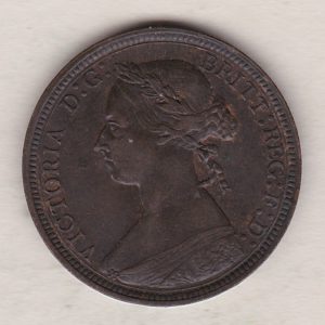 1889 Queen Victoria Bronze Halfpenny Coin In Near Extremely Fine Condition.