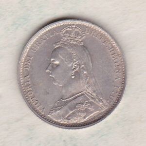 The 1889 Sixpence is a coin struck in 0.925 silver by the Royal Mint. There is a crowned and veiled bust of Queen Victoria facing left, with legend around. This portrait is often referred to as the Jubilee Head. The reverse features a crowned denomination within wreath (olive sprig on left, oak on right), with date below.
