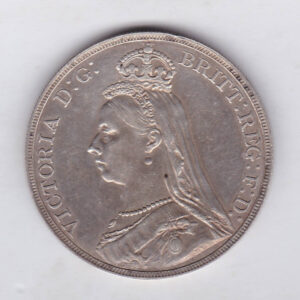 1890 Silver Crown Coin featuring Queen Victoria Jubilee head on the Obverse and the St George & dragon design on the reverse.1890 Silver Crown – Victoria Jubilee Head