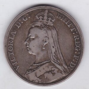 The 1891 Jubilee head Crown is a coin struck in 0.925 silver by the Royal Mint. Initially designed to commemorate Queen Victoria’s 50th anniversary Golden Jubilee in 1887 this more mature portrait of Queen Victoria on the Obverse was seen on the silver crowns up until 1892. The Reverse of this coin depicts St. George slaying the Dragon by Benedetto Pistrucci.
