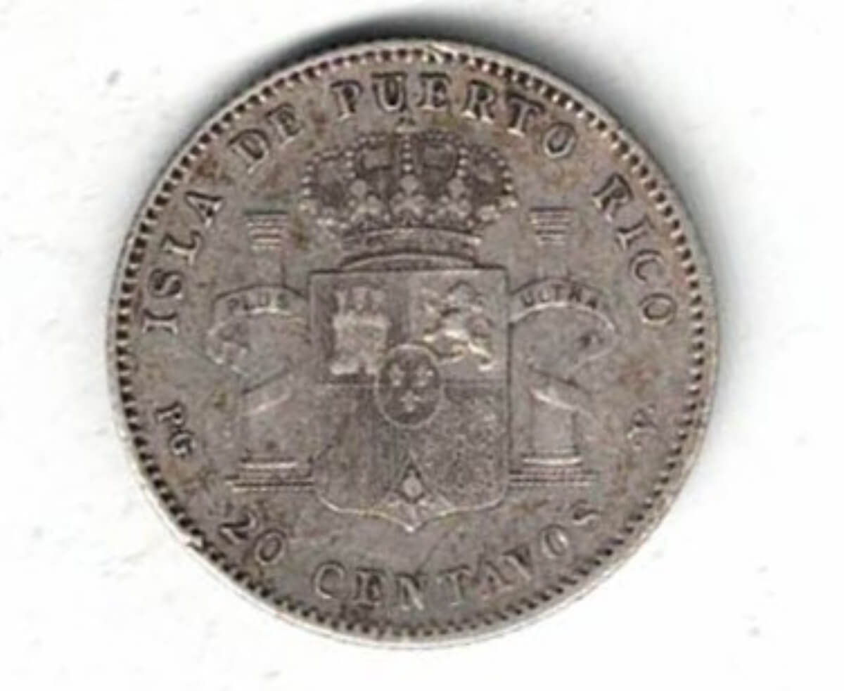 1895 Puerto Rico Silver Twenty Centavos Coin In Extremely Fine Condition.