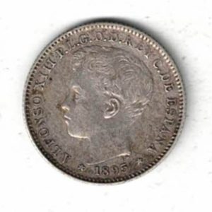 The obverse features the bust of Alfonso XIII. The reverse features a crowned arms between columns.