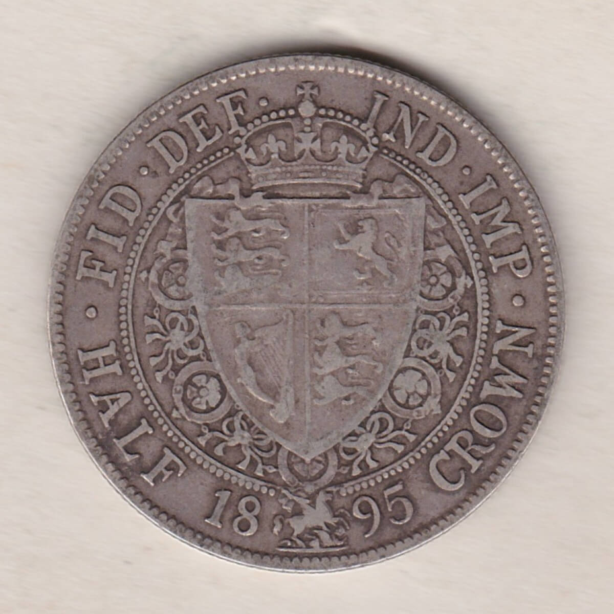 1895 Silver Halfcrown coin featuring the old head of Queen Victoria on the Obverse. The shield of royal arms completes the Reverse design.1895 Silver Halfcrown – Victoria Old Head