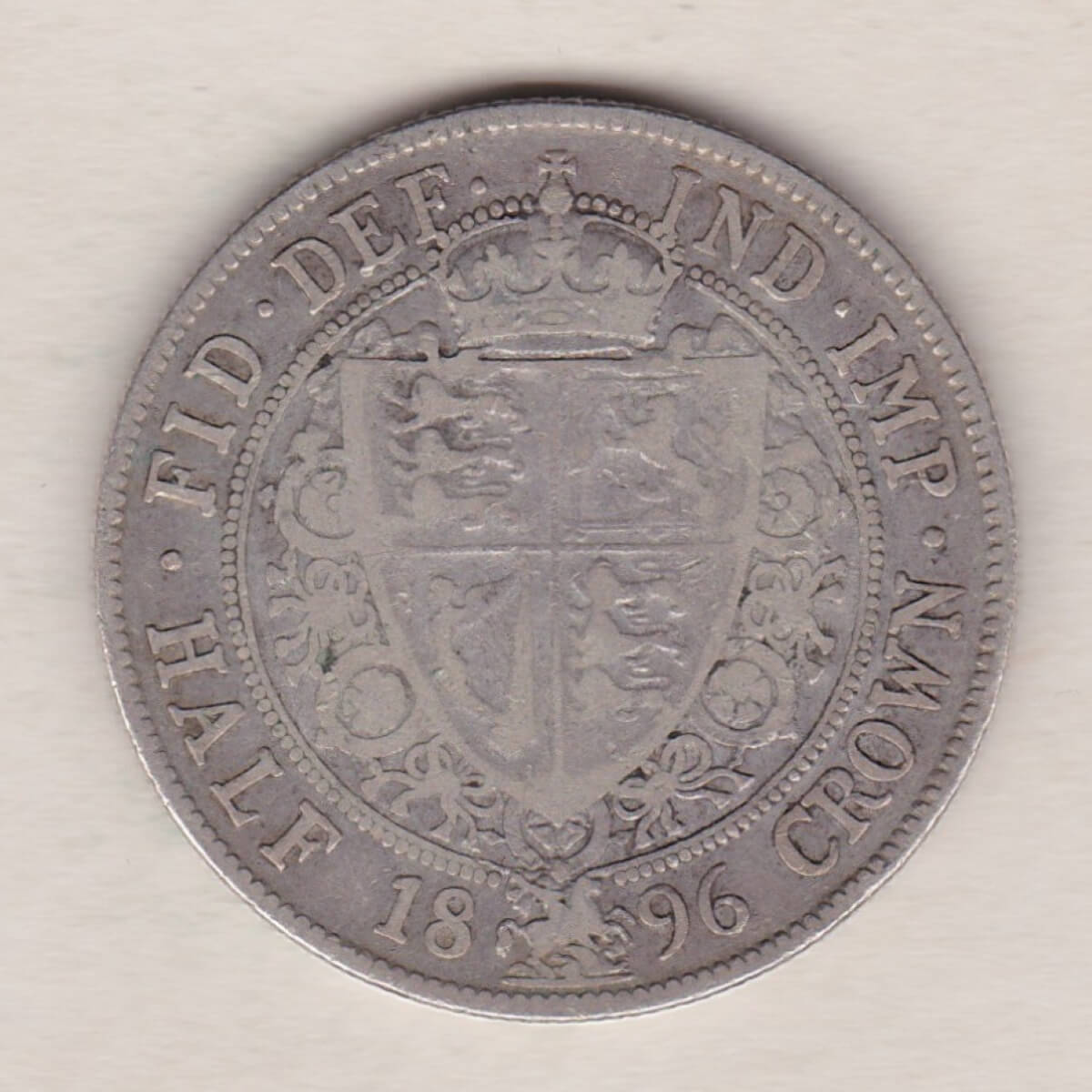 1896 Silver Halfcrown coin featuring the old head of Queen Victoria on the Obverse. The shield of royal arms completes the Reverse design.1896 Silver Halfcrown Coin