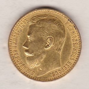 This gold 15 Roubles coin was struck in 0.900 gold and weighs approx. 12.9 grams.