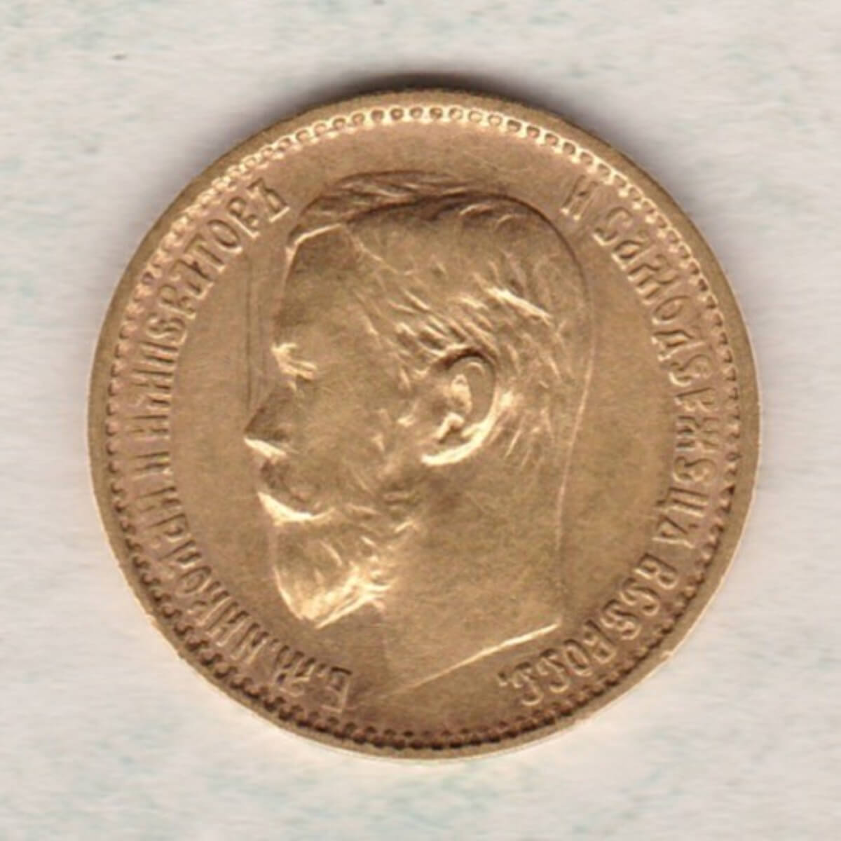 The gold 5 Roubles coin was struck in 0.900 gold and weighs approx. 4.3 grams.