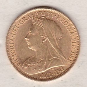 The 1899 half sovereign is a coin struck in 22 carat gold by the Royal Mint. The obverse of the coin features an older crowned and veiled bust of Queen Victoria facing to the left, with legend around. This was the third and final portrait of Queen Victoria and is often referred to as the ‘old head’. The reverse depicts St George slaying the dragon, with the date in exergue.