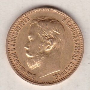 The gold 5 Roubles coin was struck in 0.900 gold and weighs approx. 4.3 grams.