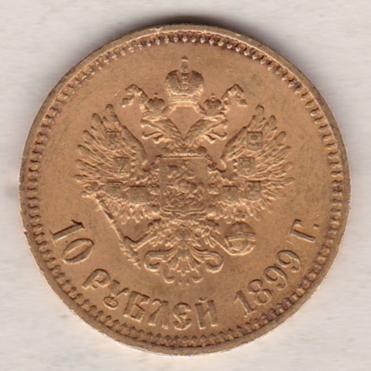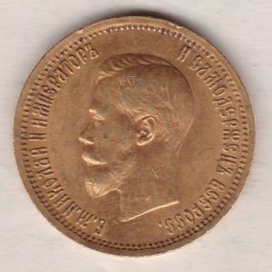 This gold 10 Roubles coin was struck in 0.900 gold and weighs approx. 8.6 grams.