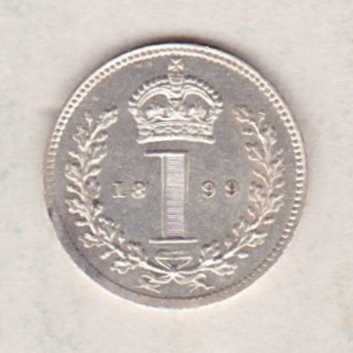 The 1899 maundy penny is a coin struck in 0.925 silver by the Royal Mint. The Obverse features the older crowned and veiled bust (‘Old Head’) of Queen Victoria facing left, with legend around. The Reverse of this coin depicts a central crowned denomination above the date, within oak wreath.