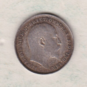 The 1905 Threepence is a coin struck in 0.925 silver by the Royal Mint. There is an uncrowned portrait of King Edward VII facing right with the legend around. The Reverse features a crowned denomination dividing the date, all within an oak wreath.