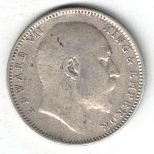The 1907 One Rupee is a coin struck in .917 silver in Bombay India. The obverse side of this coin features the bust of Edward VII facing right. The reverse has the denomination and date below with a spray of lotus flowers with crown above.