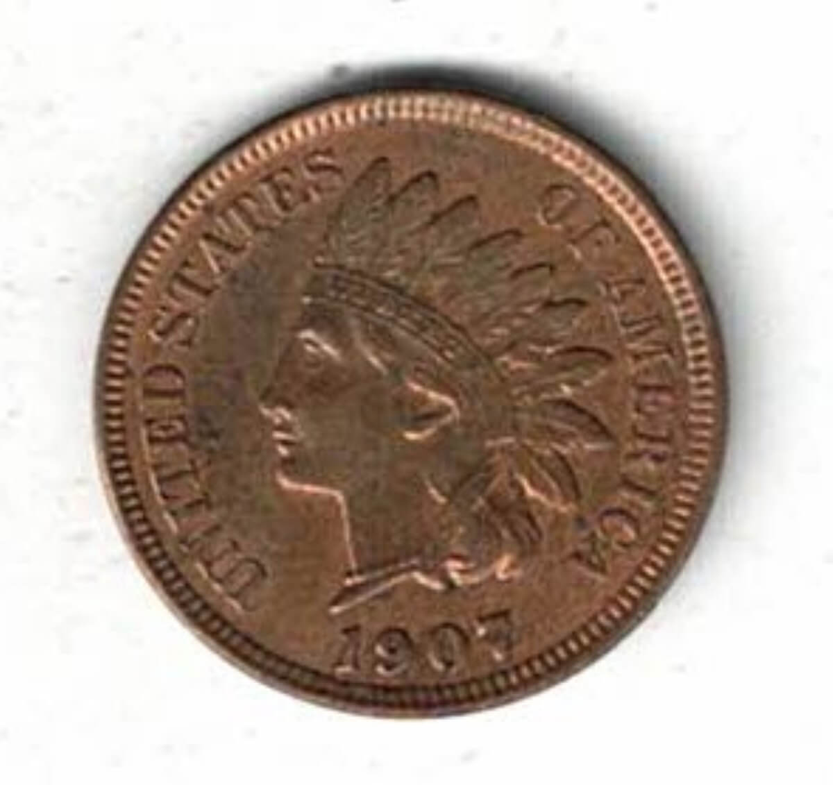 1907 USA Bronze One Cent Coin In Near Mint Condition.