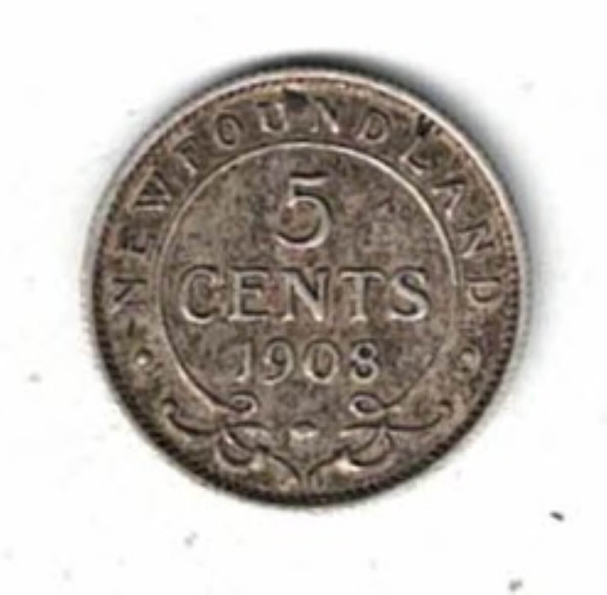 1908 Newfoundland Canada Silver Five Cents Coin in Good Very Fine Or Slightly Better Condition.