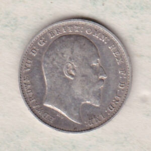 The 1908 Threepence is a coin struck in 0.925 silver by the Royal Mint. There is an uncrowned portrait of King Edward VII facing right with the legend around. The Reverse features a crowned denomination dividing the date, all within an oak wreath.