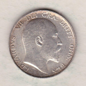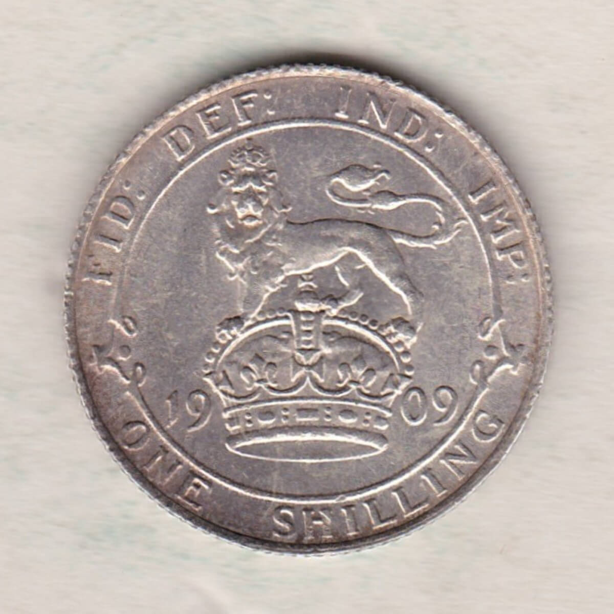 The 1909 Shilling is a coin struck in 0.925 silver by the Royal Mint. This coin features the uncrowned portrait of King Edward VII facing right, with legend around. The reverse features a crowned lion passant atop crown dividing date, with legend above, and denomination below.