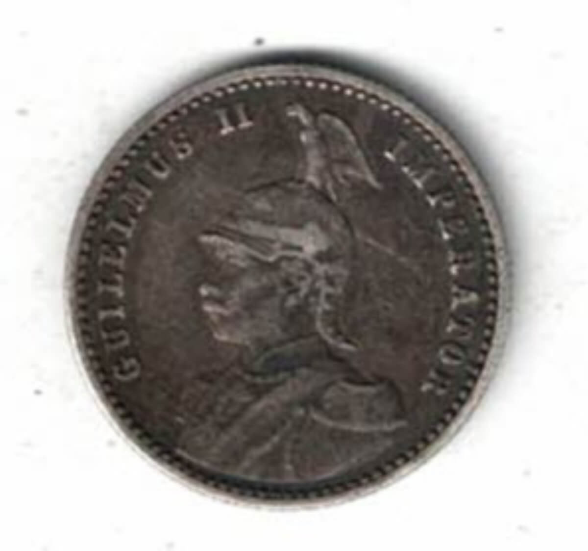 The obverse features the bust of Wilhelm II facing left. The reverse features a wreath with value, date & mint mark.