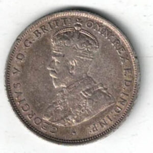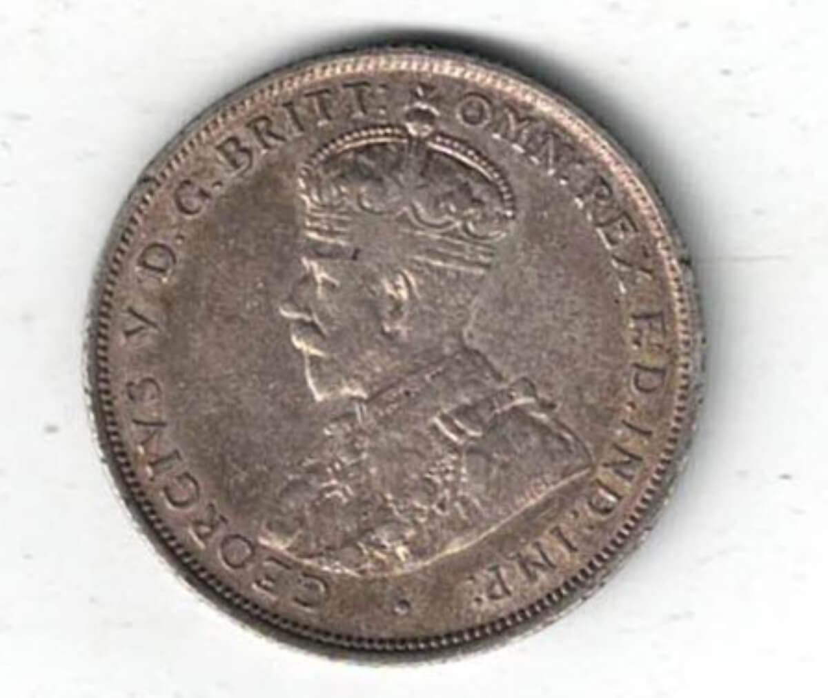 The obverse features the bust of George V facing left . The reverse features the Australia coat of arms.
