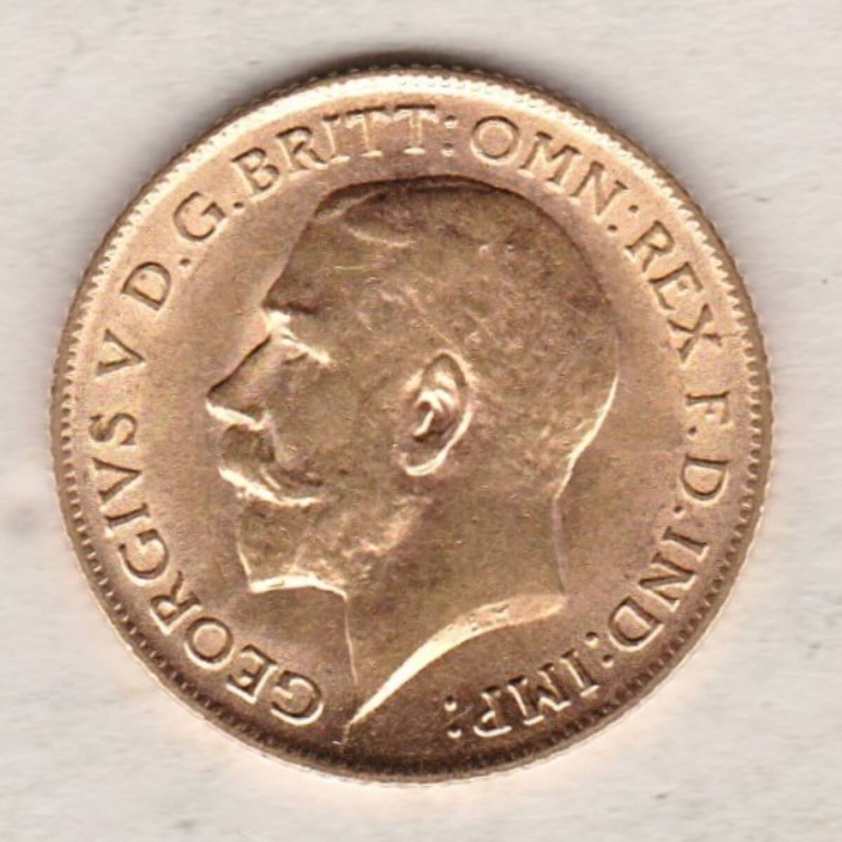 The 1912 half sovereign is a coin struck in 22 carat gold by the Royal Mint.  The obverse of this coin features the uncrowned portrait of King George V facing left, with legend around. The reverse depicts St. George slaying the dragon, with the date and designer’s initials in exergue.