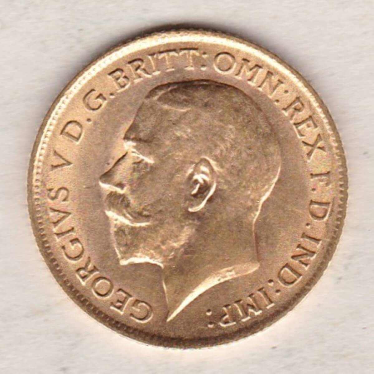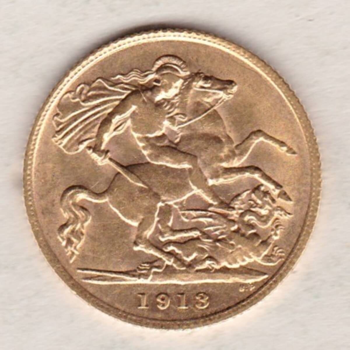 The 1913 half sovereign is a coin struck in 22 carat gold by the Royal Mint. The obverse of this coin features the uncrowned portrait of King George V facing left, with legend around. The reverse depicts St. George slaying the dragon, with the date and designer’s initials in exergue.