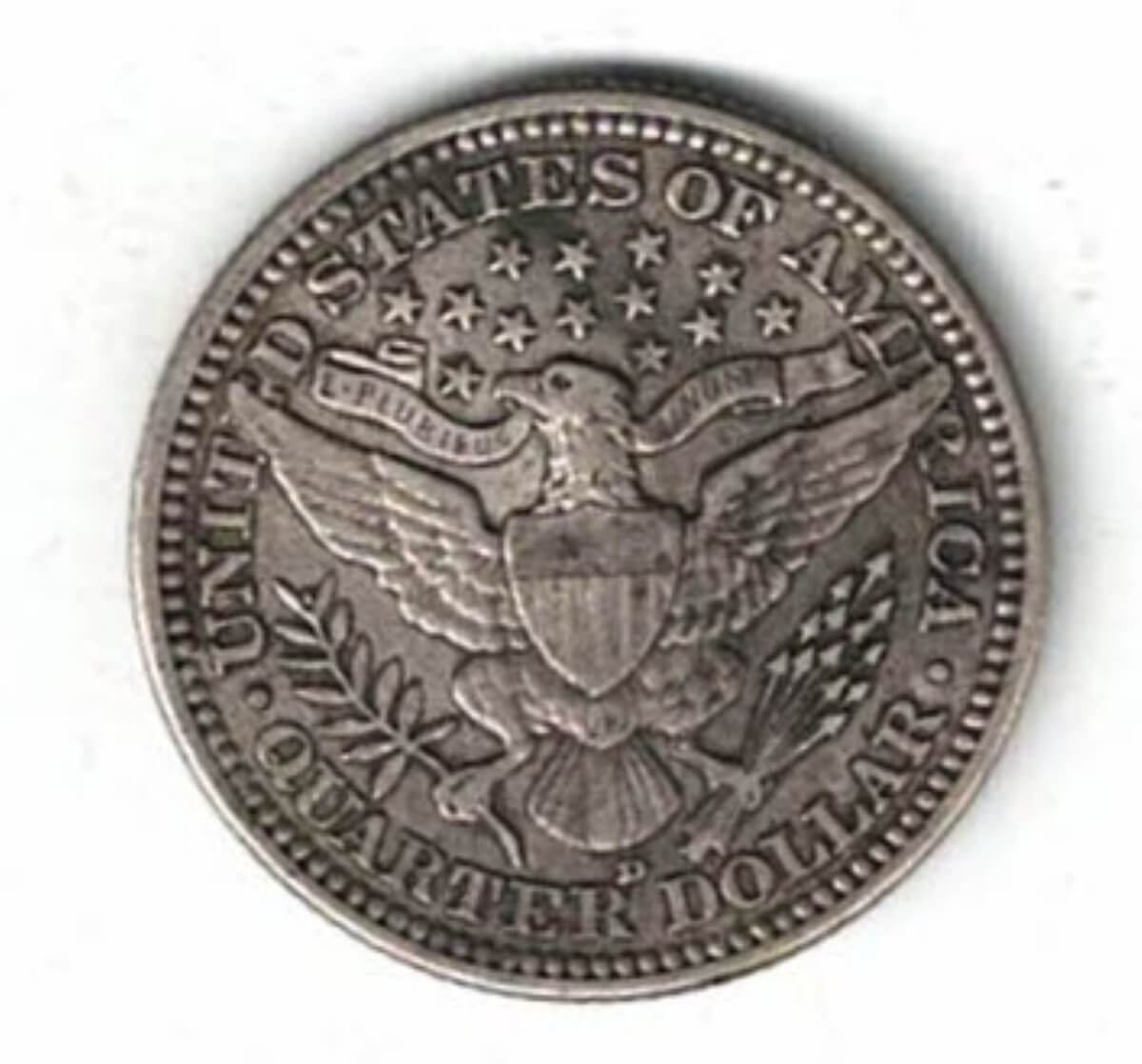 1915 D Denver Mint USA Barber Silver Quarter Dollar Coin In Very Fine Or Better Condition.