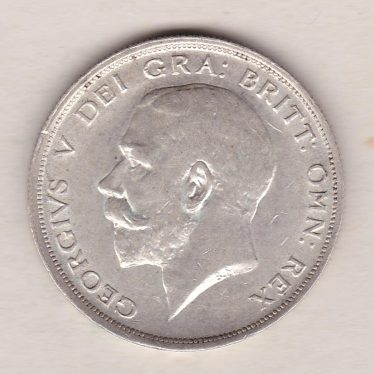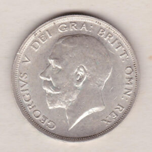 1918 Silver Halfcrown coin featuring king George V on the Obverse. The Reverse features a crowned quartered shield of arms.1918 Silver Halfcrown Coin – George V