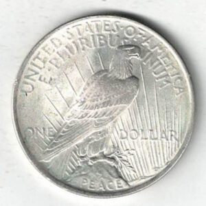 The 1922 silver dollar coin was minted in Philadelphia and is also known as the Peace Dollar. The Obverse features the capped head of Liberty facing left, wearing a headband with rays. The reverse depicts an eagle standing on a rock, wings folded, seen from the back, branch in talons, rays behind, PEACE below.