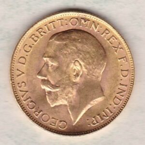 This 1926 sovereign is a coin struck in 22 carat gold in Pretoria, South Africa.  The obverse of this coin features the uncrowned portrait of King George V facing left, with legend around. The reverse depicts St. George slaying the dragon, with the date and designer’s initials in exergue. The SA – Pretoria, South Africa mintmark can be seen below the horse’s hooves.