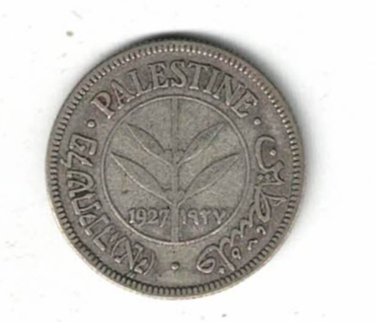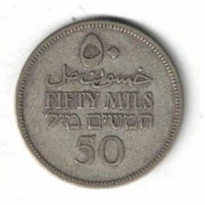 The Obverse features Palestine in Hebrew, English and Arabic around an olive branch with the date in English and Arabic on both sides of the branch. The Reverse Value in Hebrew, English and Arabic.