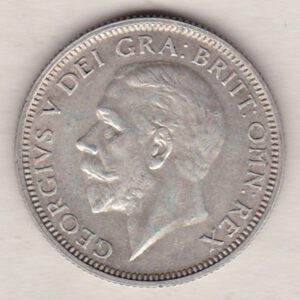 The 1928 Shilling is a coin struck in 0.500 silver by the Royal Mint. This coin features the uncrowned portrait of King George V facing left, with legend around. The reverse features a crowned lion passant atop crown, with legend above, denomination and date below.