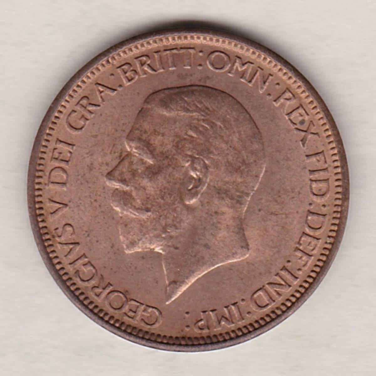 1929 King George V Bronze Halfpenny Coin In Near Mint Condition.