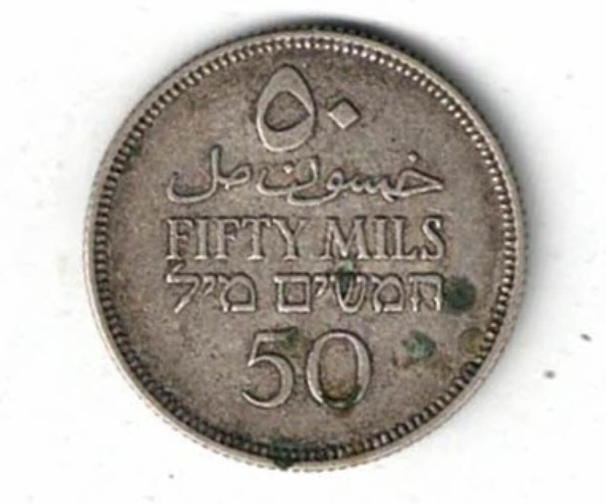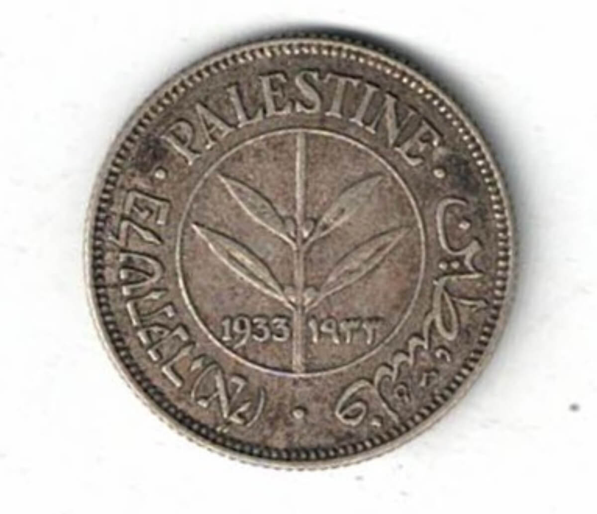 1933 Palestine Silver Fifty Mils Coin In Very Fine Condition.