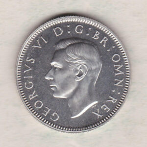 1937 Proof English Silver Shilling coin featuring King George VI on the Obverse. The Reverse features a crowned lion with date and denomination.1937 Proof English Silver Shilling – George VI