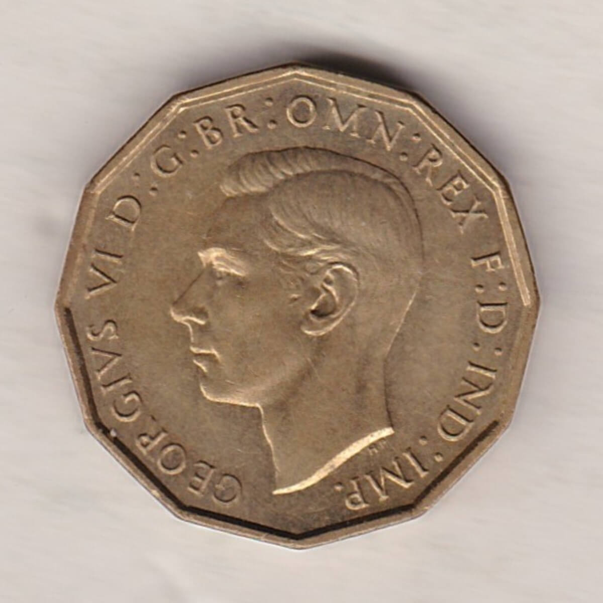 1939 King George VI Brass Threepence Coin In Near Mint To Mint Condition.
