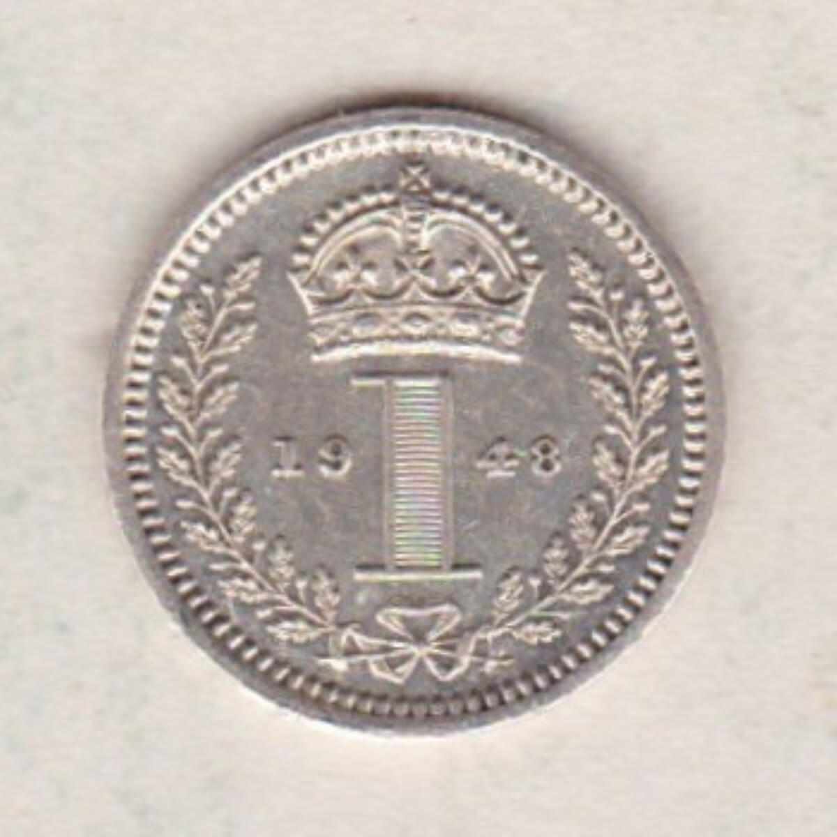 The 1948 maundy penny is a coin struck in 0.925 silver by the Royal Mint. The Obverse features the uncrowned portrait of King George VI facing left, with legend around. The reverse features a crowned denomination dividing date within an oak wreath.
