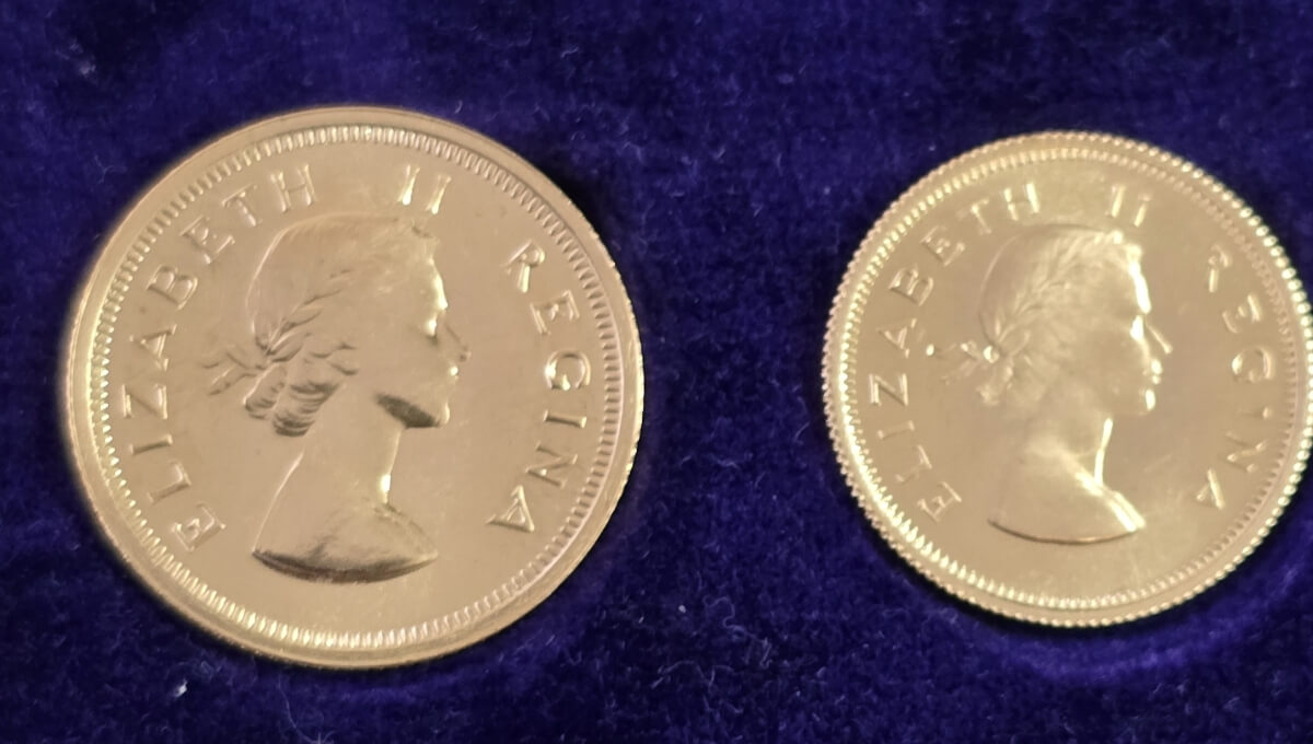 There are two gold coins in this set. These were struck in 22 carat Gold and have a combined weigh of approx. 11.98 grams.